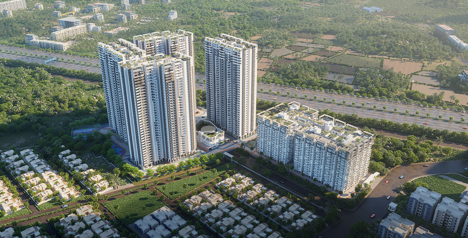 A beautiful world is rising in Kollur at Exit No.2 with 1700+ luxury apartments, 70 uber luxury sky villas / cloud villas in 6 imposing towers. Characterised with vast sit-outs that overlook a landscaped courtyard, spacious rooms for natural light to filter in, play area for the little feet and swimming pool for water therapy, Ivana is all set to steal your heart with limitlessness.